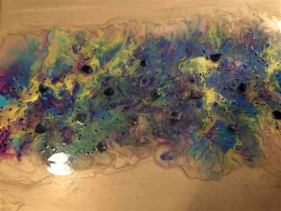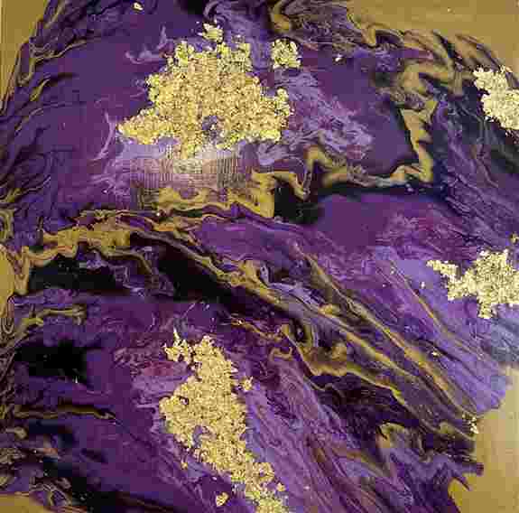 Color Your World Abstract! Luxury art for your living space.Jules is a visual, mixed media, abstract fluid artist, creating beautiful colorful artworks. She uses a technique called pourpainting, paint flowing onto a canvas and then adding unique touches of mixed media elements with gold/silver foil, Swarovski crystals, glitter, rocks or glass granules, then finished with an epoxy resin to give it a glossy shine.