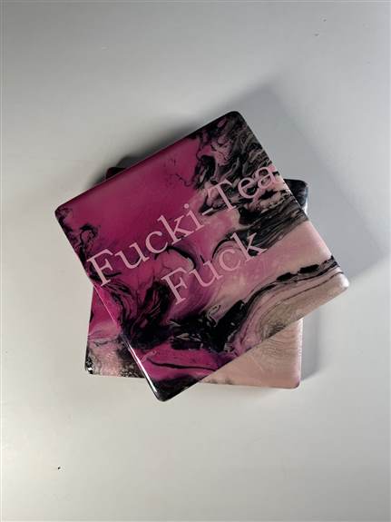 My pieces are one-of-a kind acrylic paint on canvas and ceramic coasters.